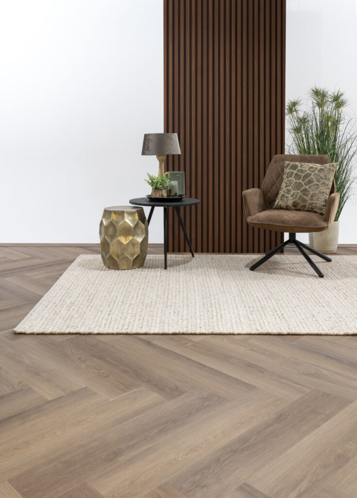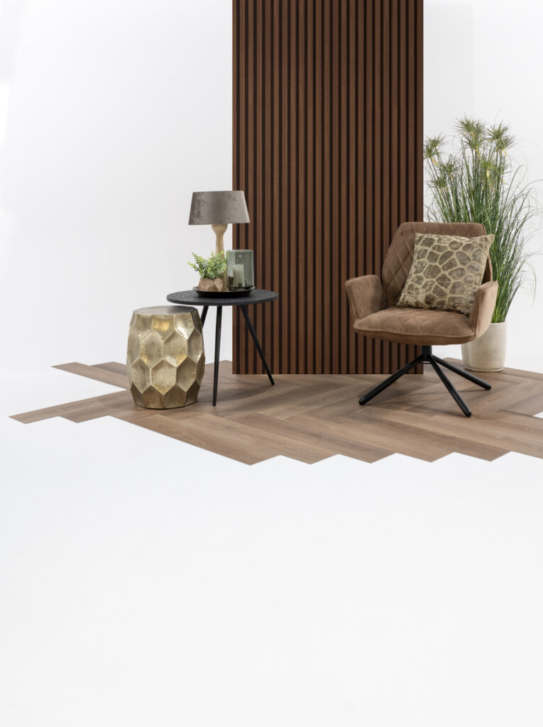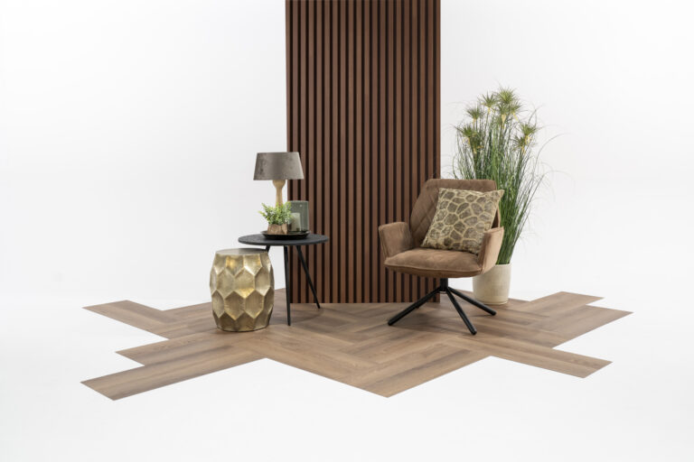 Kwaliteit staat centraal bij de Heritage Dryback Herringbone. De vloer is vervaardigd uit hoogwaardig PVC dat bekendstaat om zijn maatvastheid. Dit is cruciaal bij een visgraatvloer, omdat de planken naadloos op elkaar moeten aansluiten. Doordat de vloer verlijmd wordt, is er geen sprake van werking en worden loopgeluiden tot een minimum beperkt.