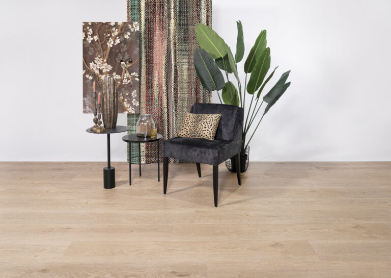 De planken zijn rondom afgewerkt met een subtiele 4-zijdige V-groef, die elke plank afzonderlijk accentueert. De vloer wordt geleverd in verpakkingen van 3,34 m². Daarnaast is de Nature Dryback technisch zeer sterk: hij beschikt over brandklasse Bfl-S1 en is bij intensief gebruik bestand tegen zwenkwielen. Een ideale keuze voor wie zoekt naar een sterke basis met een natuurlijke uitstraling.
