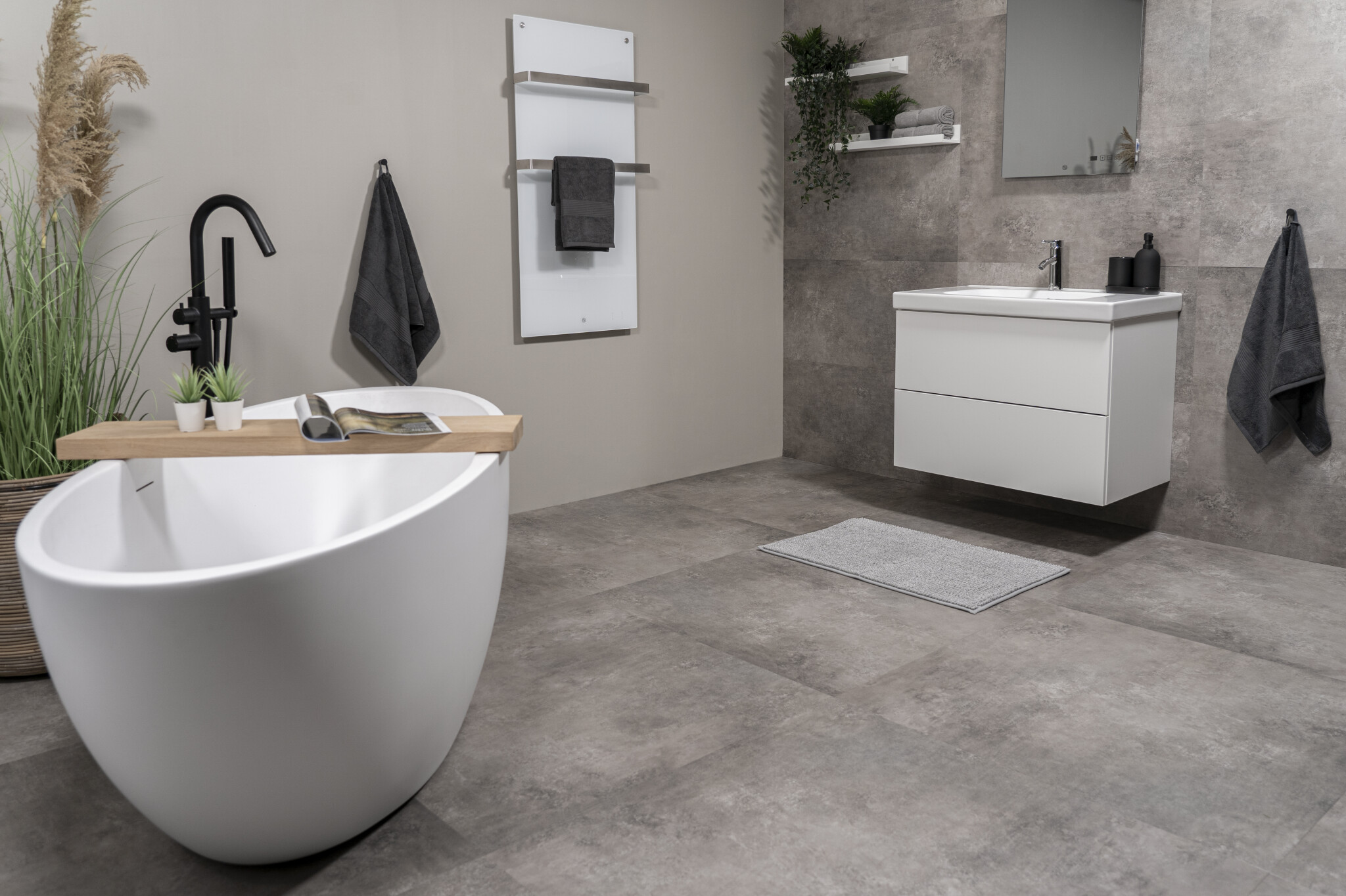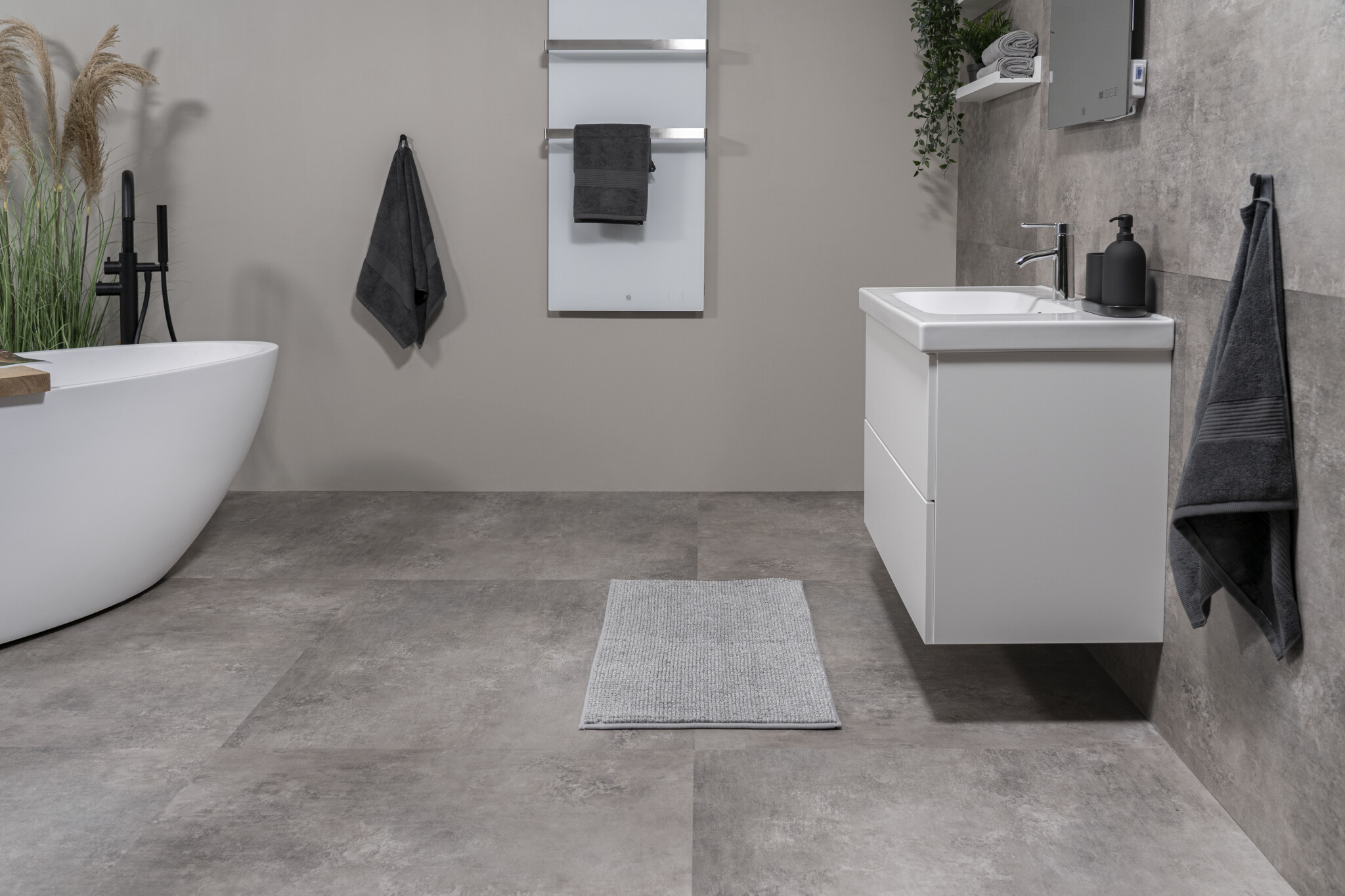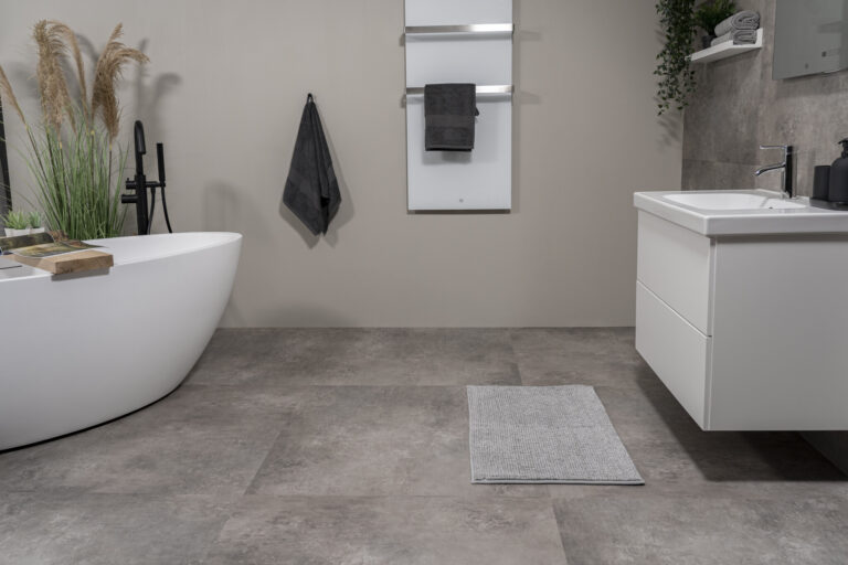 De Stone Dryback is de ideale keuze voor wie houdt van de uitstraling van een gietvloer of beton, maar het comfort wil van PVC. De vloer voelt, in tegenstelling tot echt steen, warm en zacht aan. Hij is uitstekend geschikt voor vloerverwarming; de warmte wordt efficiënt doorgegeven, waardoor je het systeem veilig kunt gebruiken tot maximaal 27 graden.