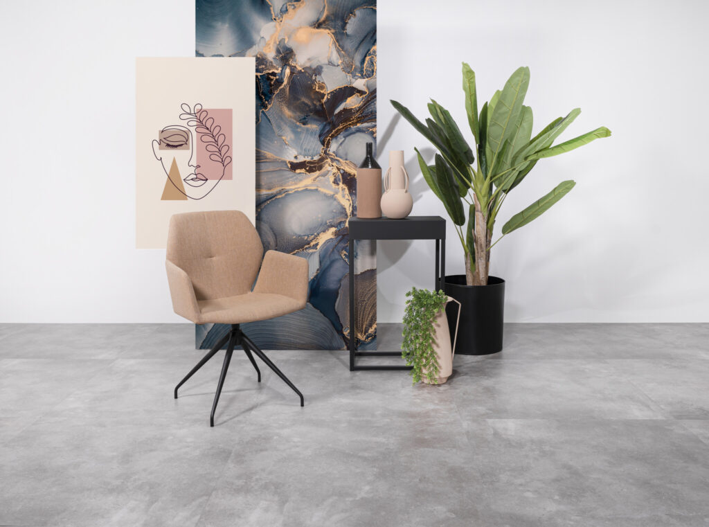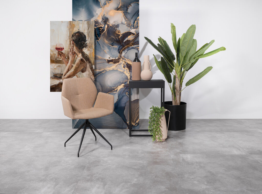Het onderhoud is bovendien een verademing vergeleken met echt beton. De vloer is volledig dicht, vochtbestendig en vlekken trekken er niet in. Hierdoor is de Stone Dryback ook perfect voor de keuken of hal. Dankzij de geschiktheid voor zwenkwielen kun je deze vloer ook probleemloos in een kantoorruimte toepassen.